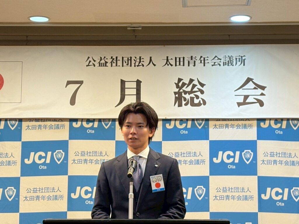 とても厳粛な雰囲気の中、2026年度の運営体制が決議され、高橋佑介君の ( 公社 ) 太田青年会議所第 62代理事長予定者就任が賛成多数にて信任されました。